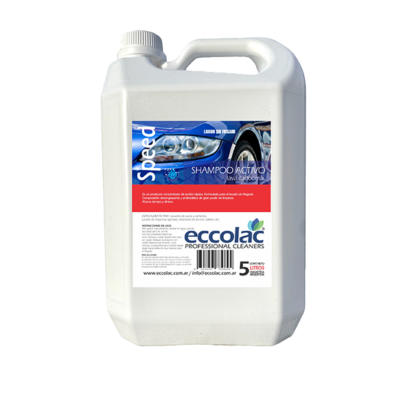 Speed shampoo activo de acción rápida y formulado para el lavado sin fregado. Composición desengrasante y antiestático de gran poder de limpieza.